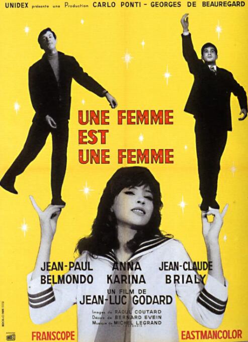 美艳性感的脱衣舞娘安吉拉(安娜·卡里娜AnnaKarina饰)与男友埃米尔(让-克劳德·布里亚利Jean-ClaudeBrialy饰)同居很久。安吉拉非常想要一个孩子与埃米尔长相厮守,可埃米尔非常享受二人世界的自由,不想结婚更不用说生儿育女,争吵在所难免。在屡次遭到埃米尔的拒绝后,安吉拉一气之下找到了埃米尔的好友阿尔弗雷德(让-保罗·贝尔蒙多JeanPaulBelmondo饰)并与之发生了关系。由法国新浪潮奠基者之一让-吕克·戈达尔执导编剧的彩色宽银幕电影《女人就是女人》,是他向好莱坞音乐歌舞片的致敬之作。影片颠覆传统歌舞片模式,是一部“新现实主义歌舞片”。本片荣获1961年第11届柏林国际电影节银熊奖最佳女演员和特别奖两项殊荣,并入围金熊奖。